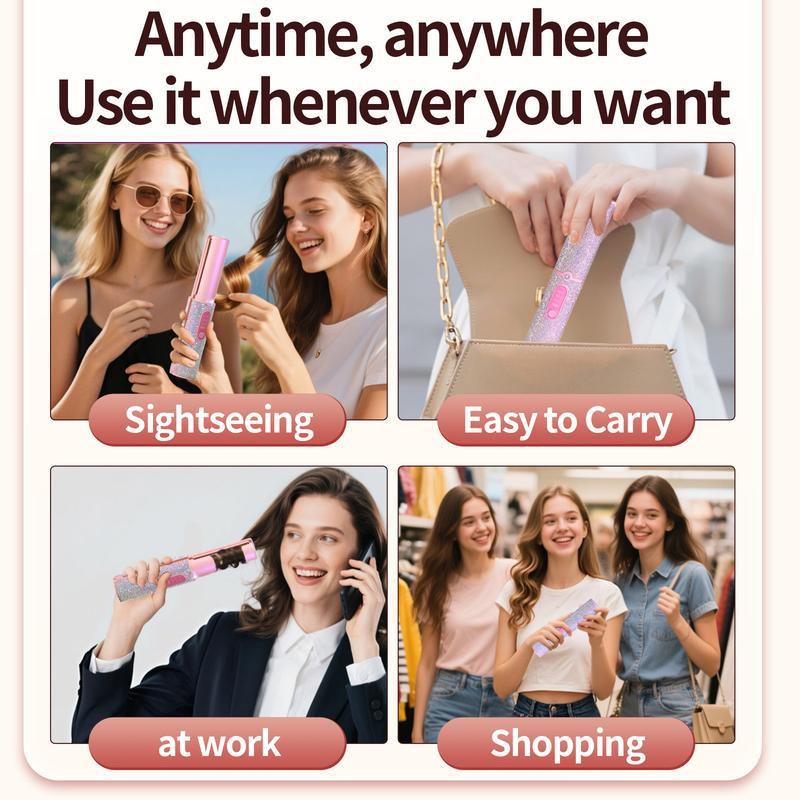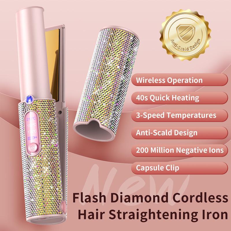 Campus-ready shine, cordless portability — your dorm's “style icon.” Suitable for all hair types + Gentler non-heating plate design, a time and space-saving master, rhinestones satisfy your fashion needs